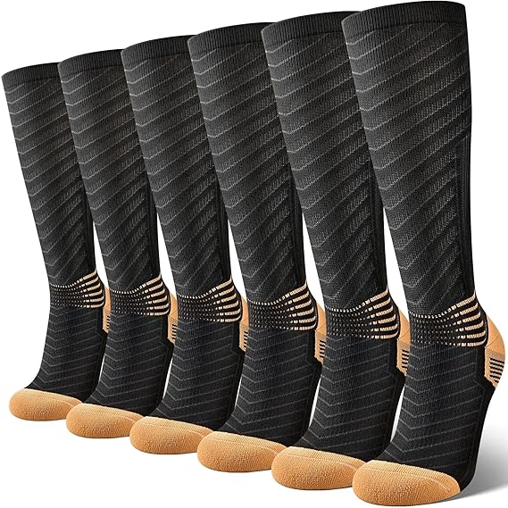 Copper Compression Socks Women Men 20-30 mmHg Ankle Support V-Shape Compression Coolmax Wicking Knee High Socks