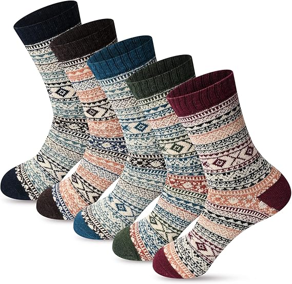 Winter Womens Socks Wool Warm Thick Knit Cozy Crew Casual Vintage Soft Socks for Women Christmas Gifts Socks 5 Pairs