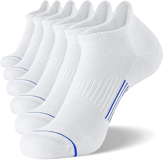 6 Pack Men's Running Ankle Socks with Cushion, Low Cut Athletic Sport Tab Socks
