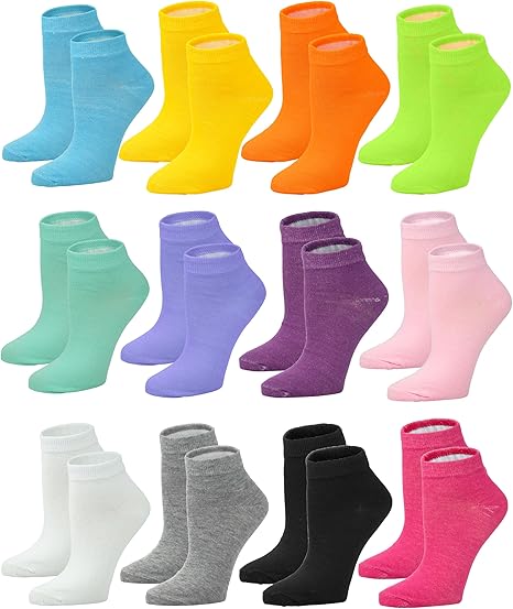 12-Pair Women's Ankle Socks, Colorful Comfortable Lightweight Breathable Athletic