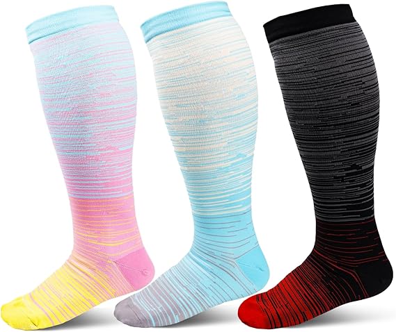 Compression Socks for Women Wide Calf Plus Size 3Pairs Graduated Knee High Support socks for Circulation