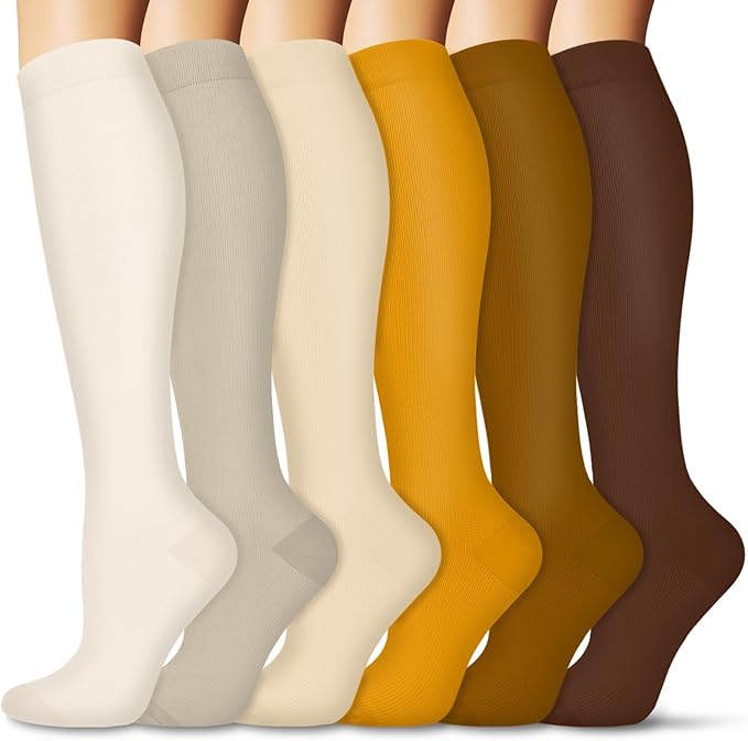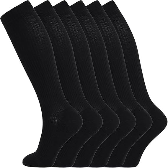 6 Pairs Compression Socks for Women and Men, 15-20 mmHg Support Knee High Socks for Nurses,Athletic,Flying